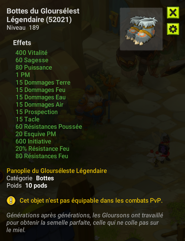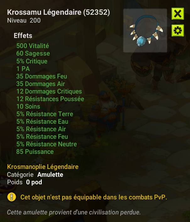 - Panoplie complète (Masque, Cape, Ceinture, Amulette, Bottes)